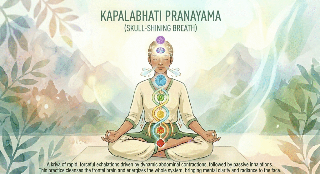 4. Kapalabhati (Skull-Shining Breath): An energizing, cleansing practice involving rapid, forceful exhales. It clears the mind, invigorates the body, and is said to purify the respiratory tract.